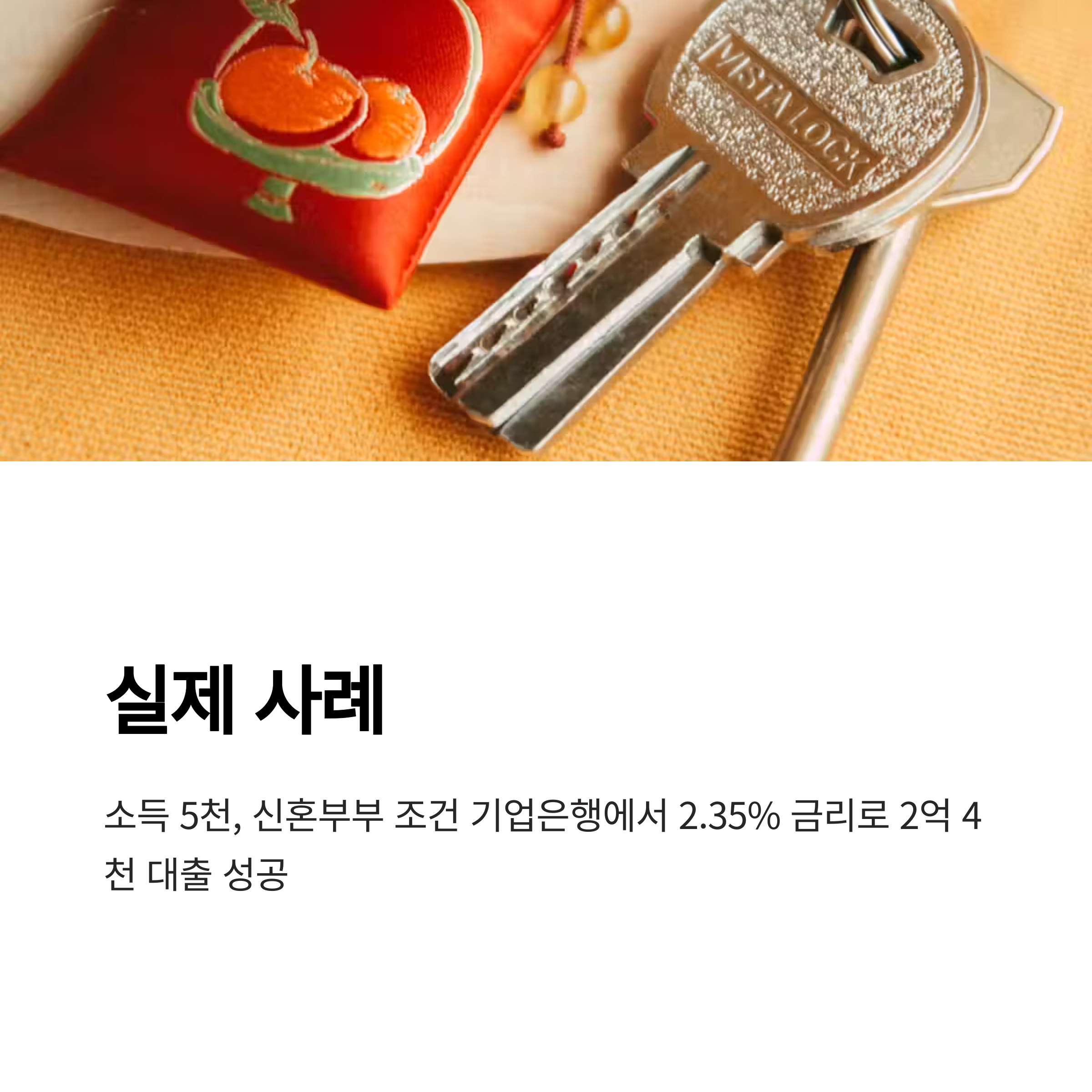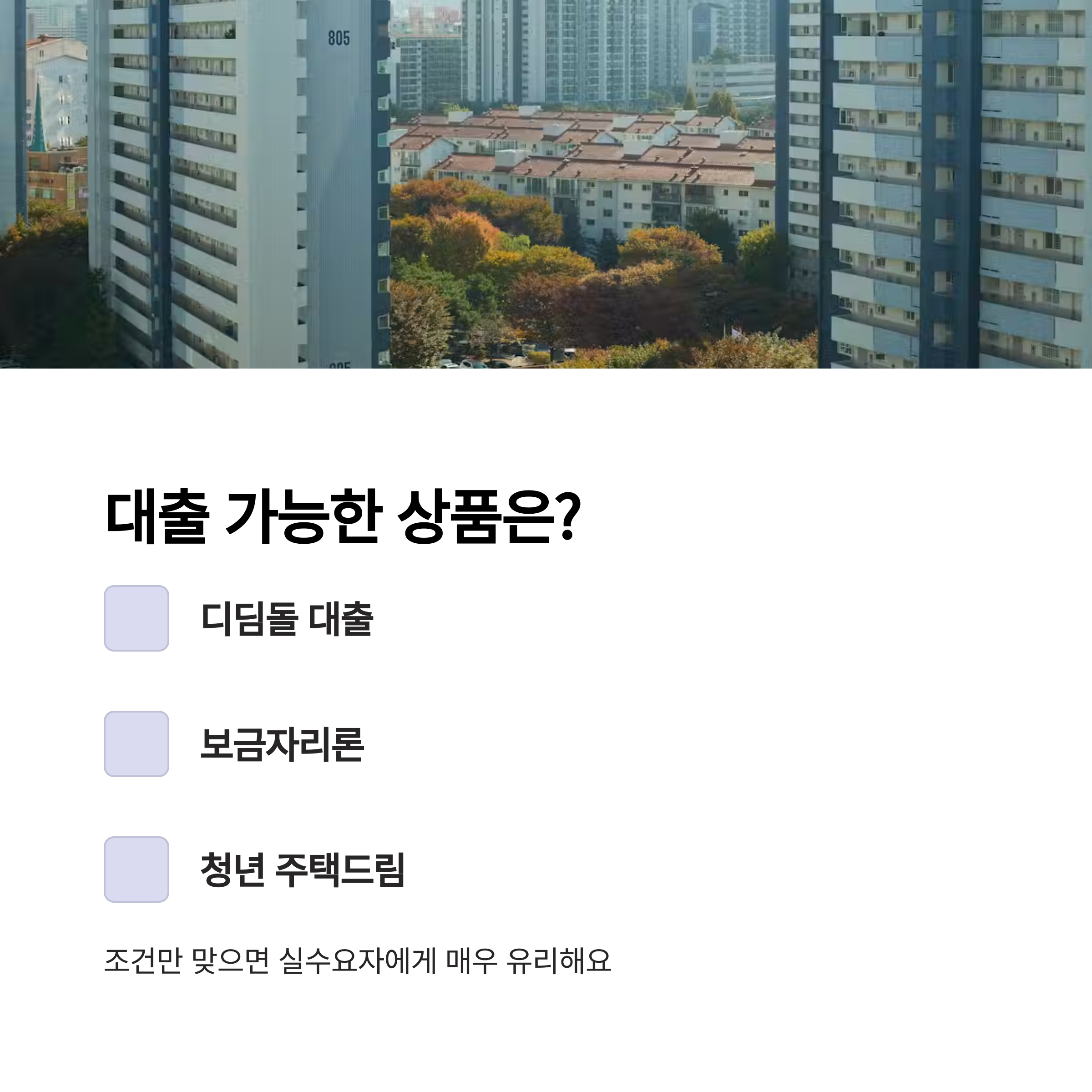 | 대출 상품 | 디딤돌 대출, 보금자리론, 청년 주택드림 |