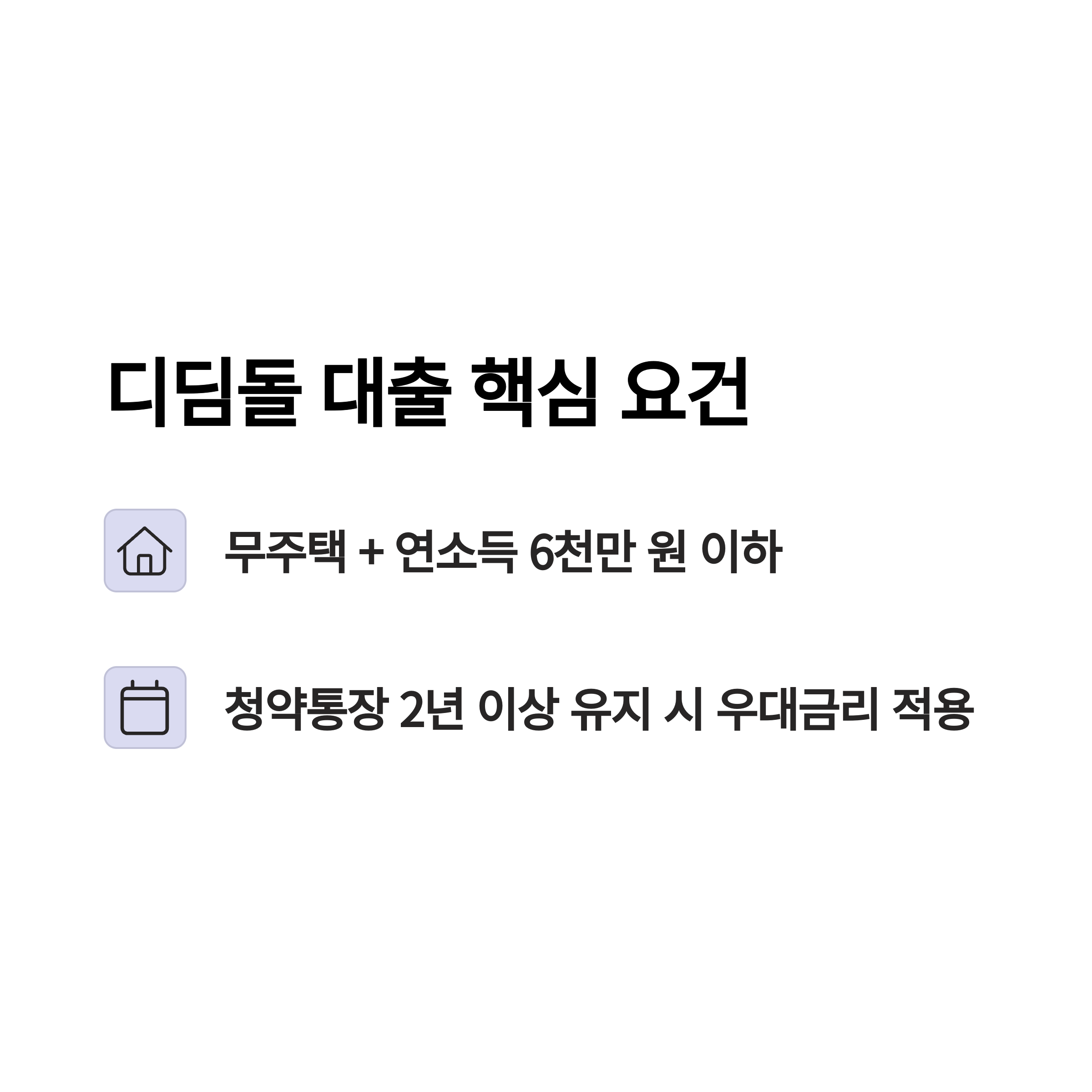 - 소득별 우대: 연소득 6천만원 이하 가구 대상