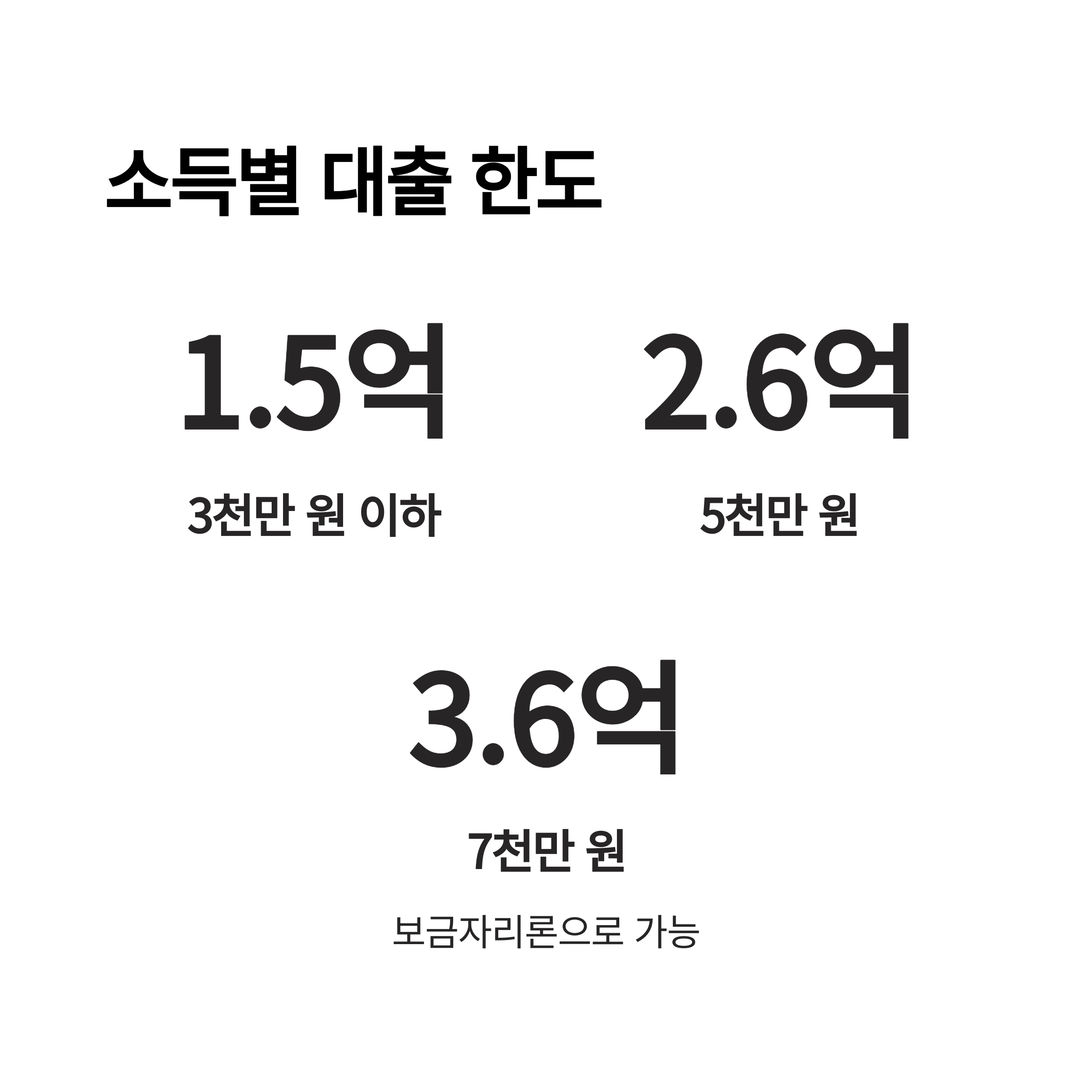| 대출 한도 | 최대 2.6억 원 | 최대 3.6억 원 |