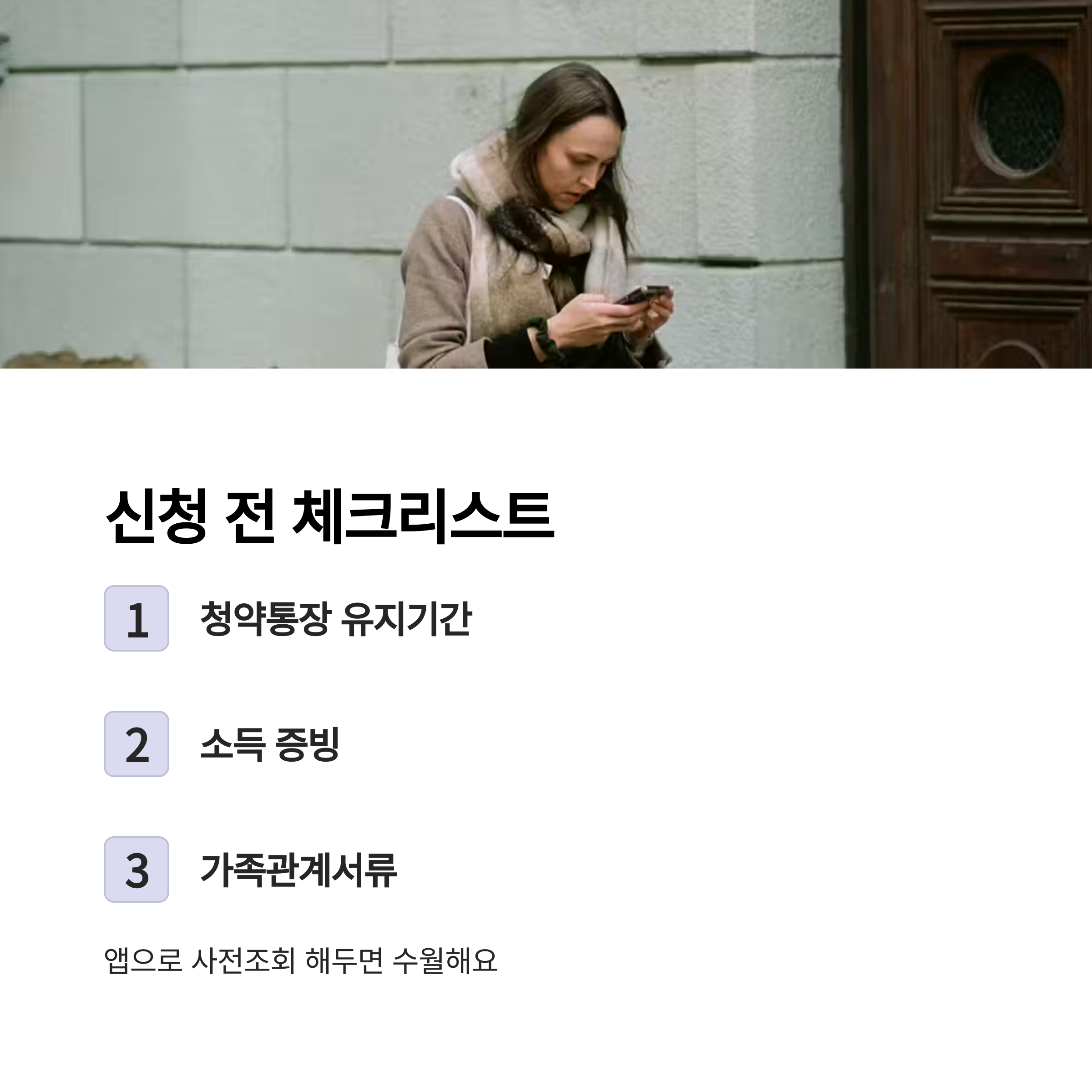 - ✓ 신혼부부, 다자녀, 장애인 등 우대 조건 해당 여부 확인