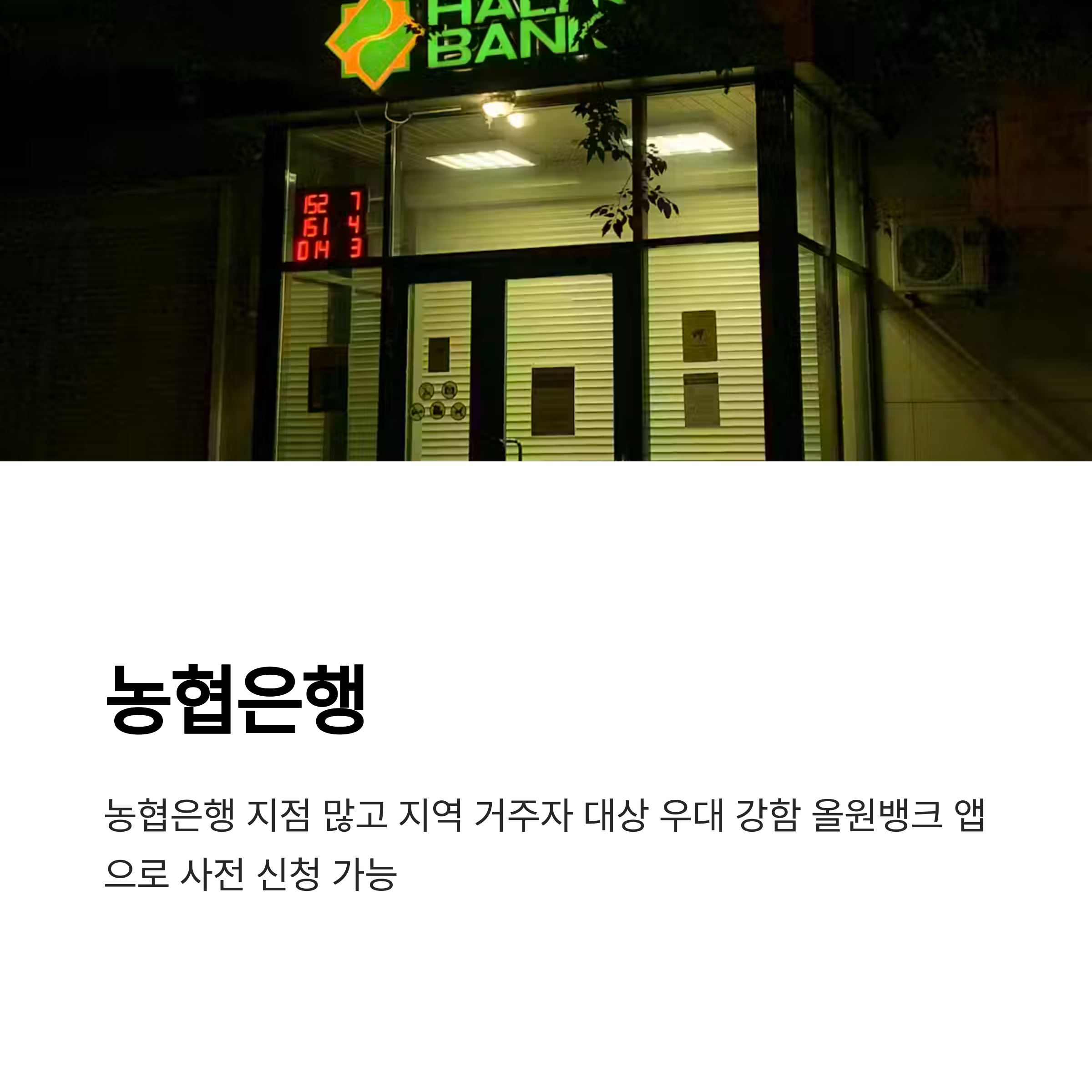 | 추천 은행 | 국민·우리·신한·농협·기업은행 |