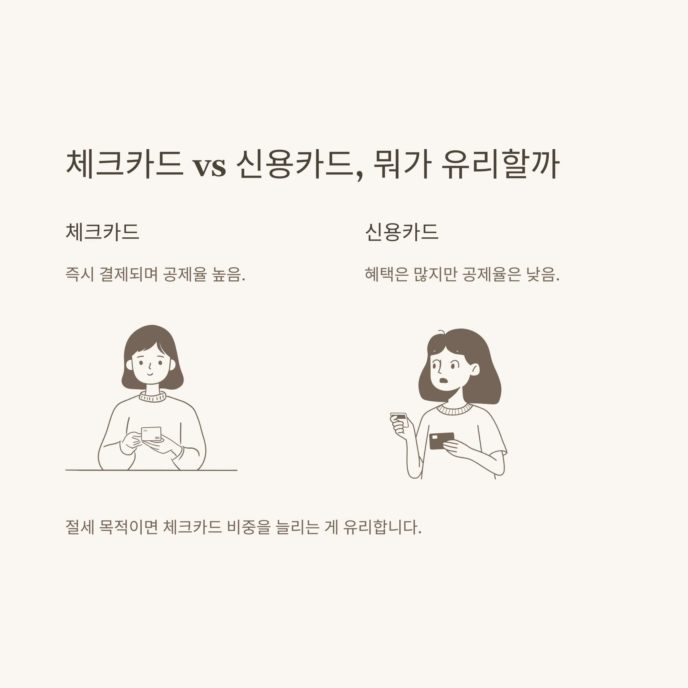 장점부터 솔직하게 말씀드리면, 체크카드 소득공제율(30%)이 신용카드(15%)의 두 배이기 때문에, 연초부터 계획적으로 체크카드를 집중적으로 사용하면 연말에 더 많은 환급을 기대할 수 있습니다. 실제로 저는 한 달 생활비 중 고정적으로 지출되는 부분(마트, 통신비, 교통 등)은 전부 체크카드로 돌려서 공제 혜택을 극대화했어요.