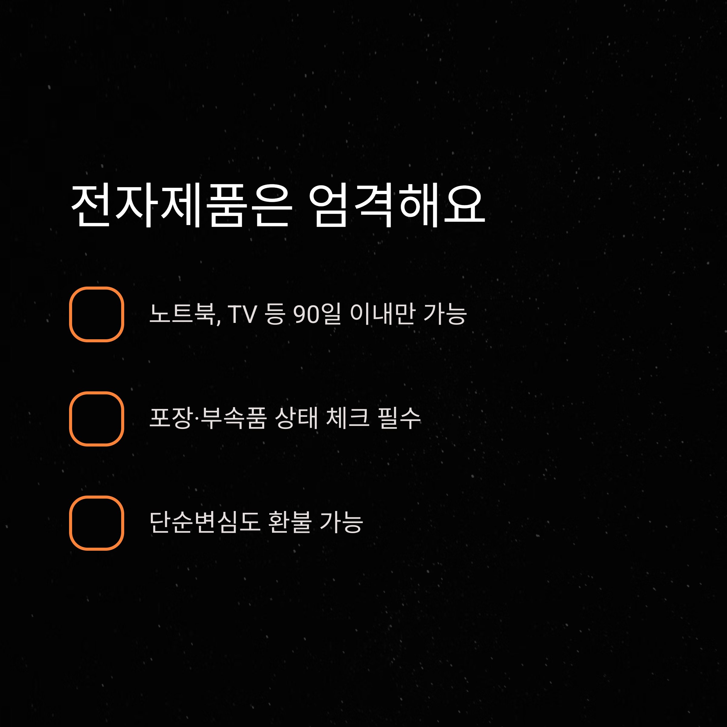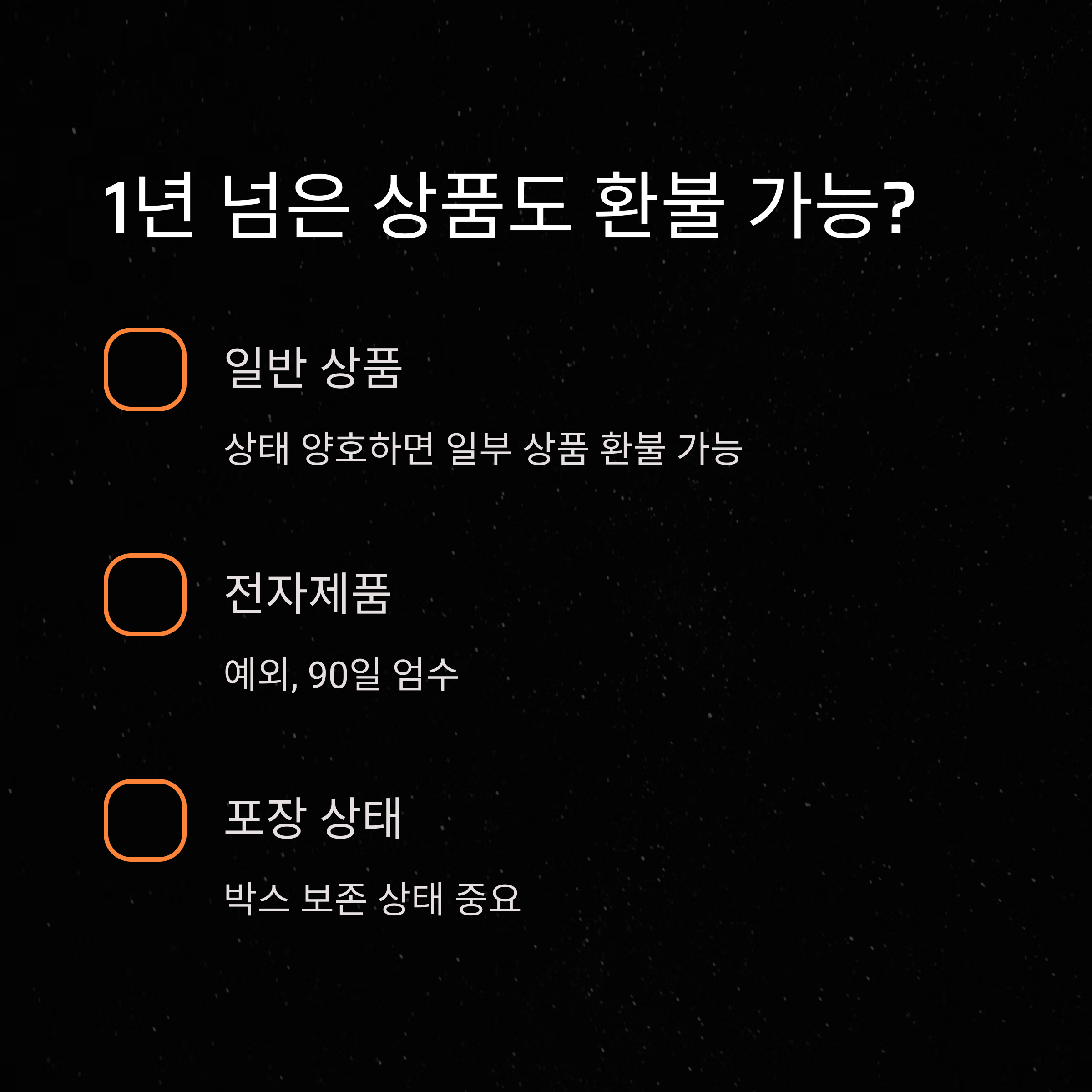 | 전자제품 포함 | 90일 초과 시 환불 불가 |
