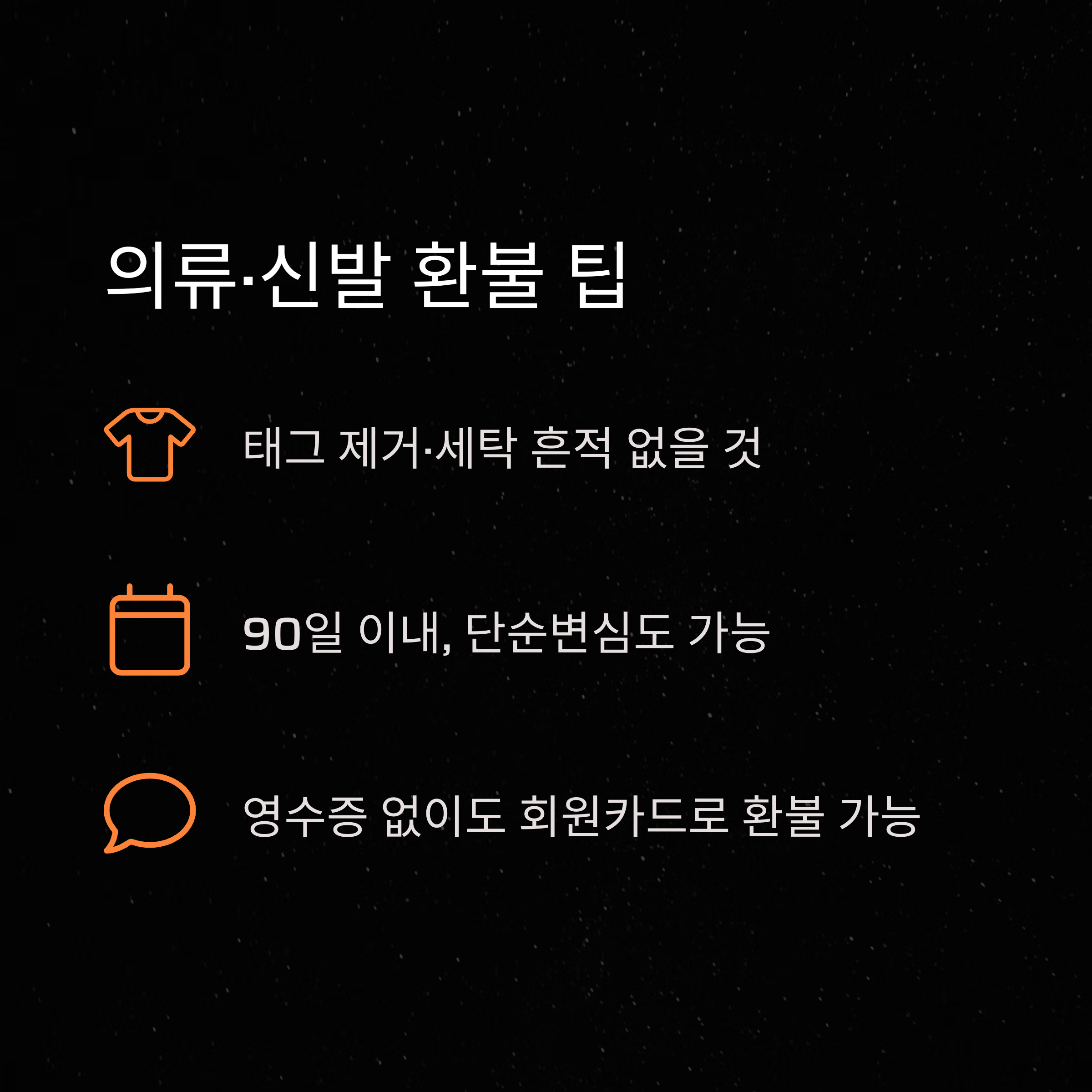 | 의류/신발 | 90일 | 세탁·착용 흔적 없을 것 |