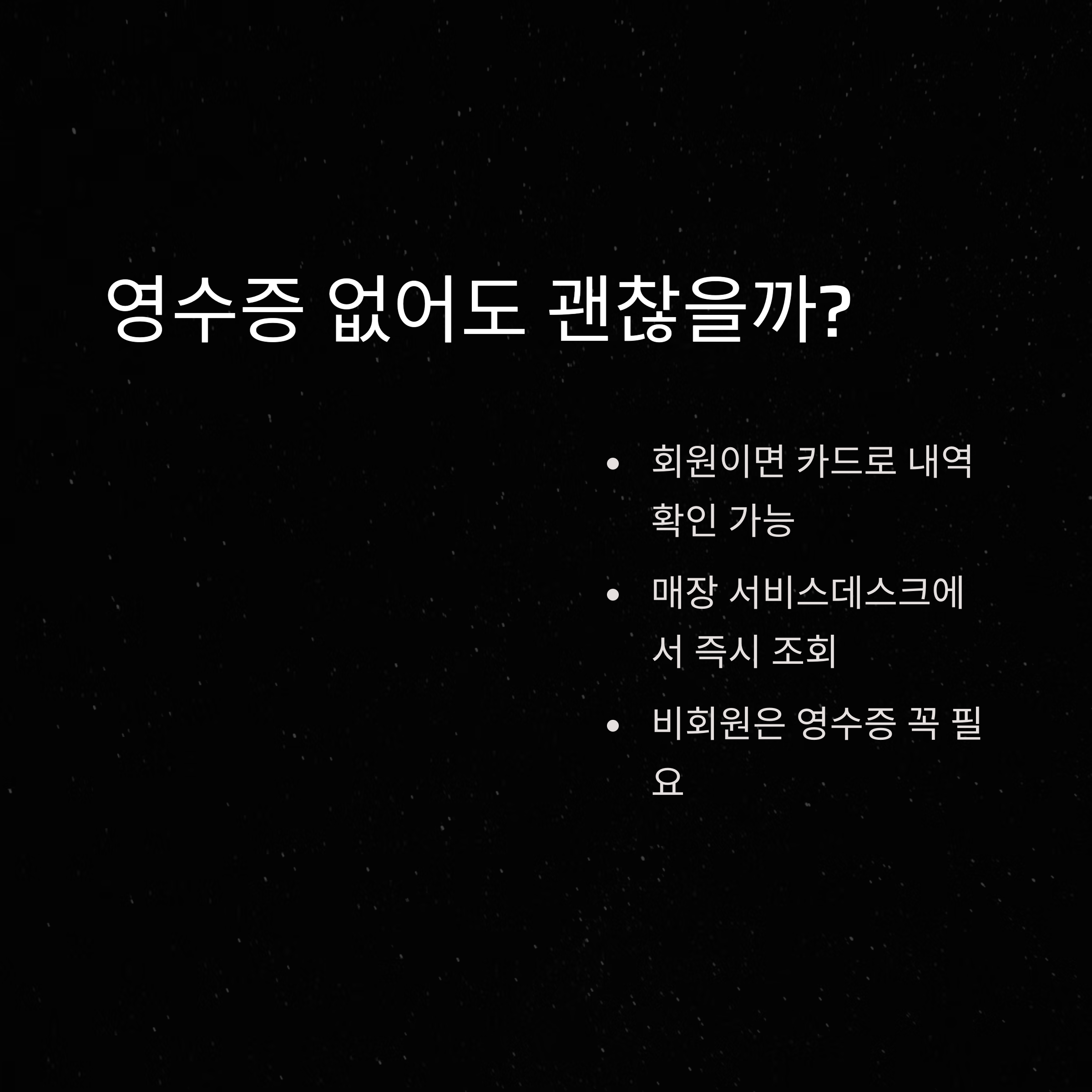 A. 영수증이 있다면 비회원도 가능하나, 대부분 회원카드로 조회합니다.
