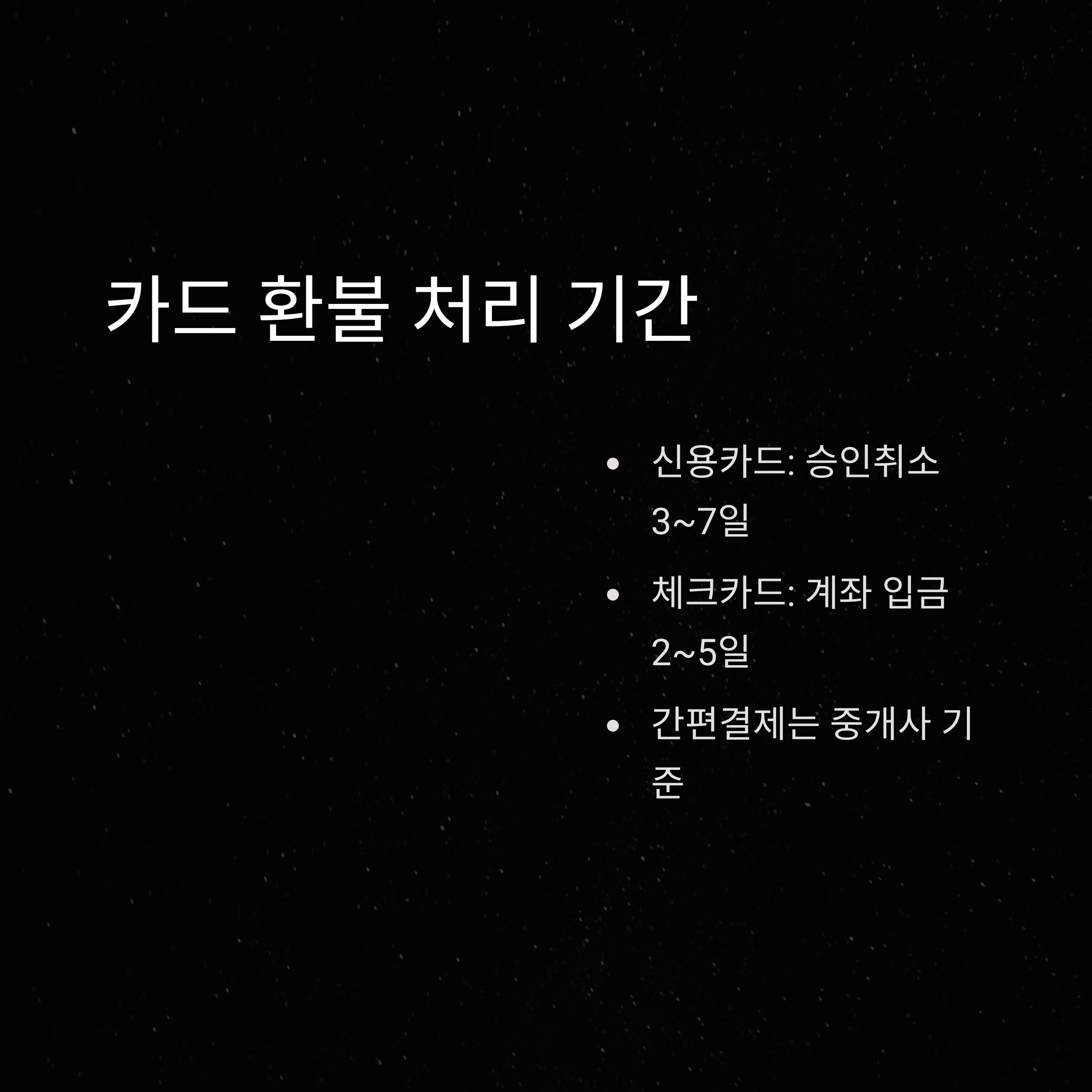 - 체크카드: 계좌로 환불되며, 2~5일 이내 입금