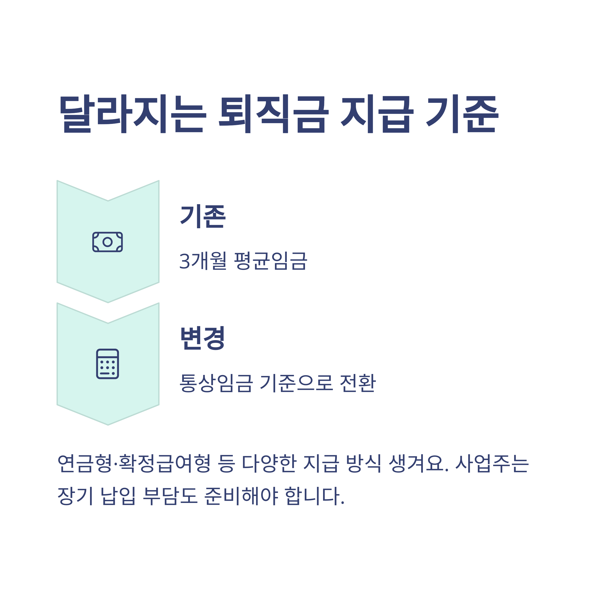 | 퇴직금 변화 | 연금형·확정급여형 중심, 통상임금 기준으로 변경 |