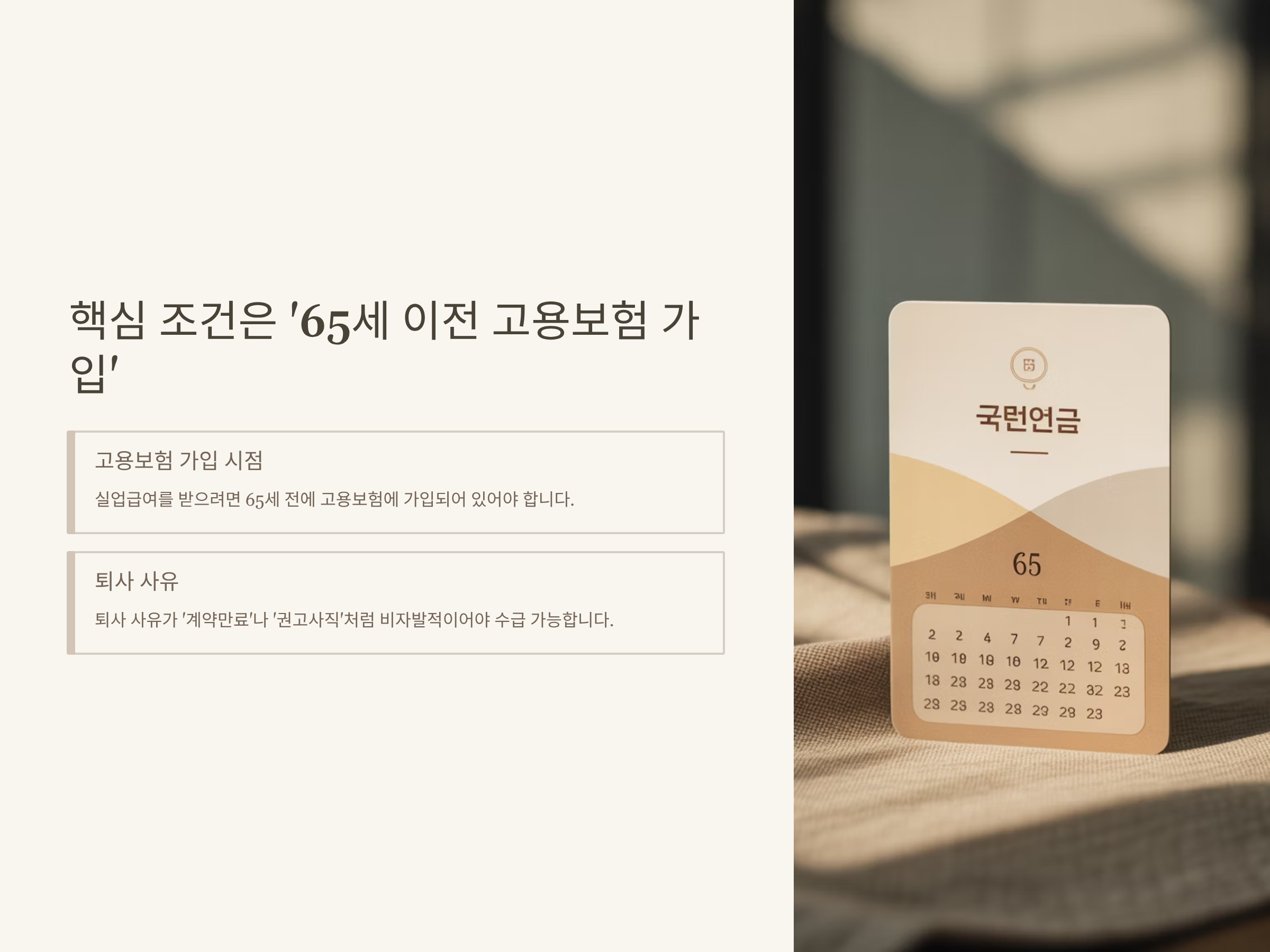 65세이상에서 실업급여를 받기 위한 조건은 상당히 엄격합니다. 저는 실제로 부모님 지인분께서 계약 종료 후 “과연 받을 수 있을까?” 고민하시길래 고용센터에 문의해본 경험이 있습니다. 핵심은 ‘고용보험 피보험자격을 65세 이전에 취득’했는지, 그리고 이직 사유가 비자발적(권고사직, 계약만료 등)인지에 달려 있습니다.