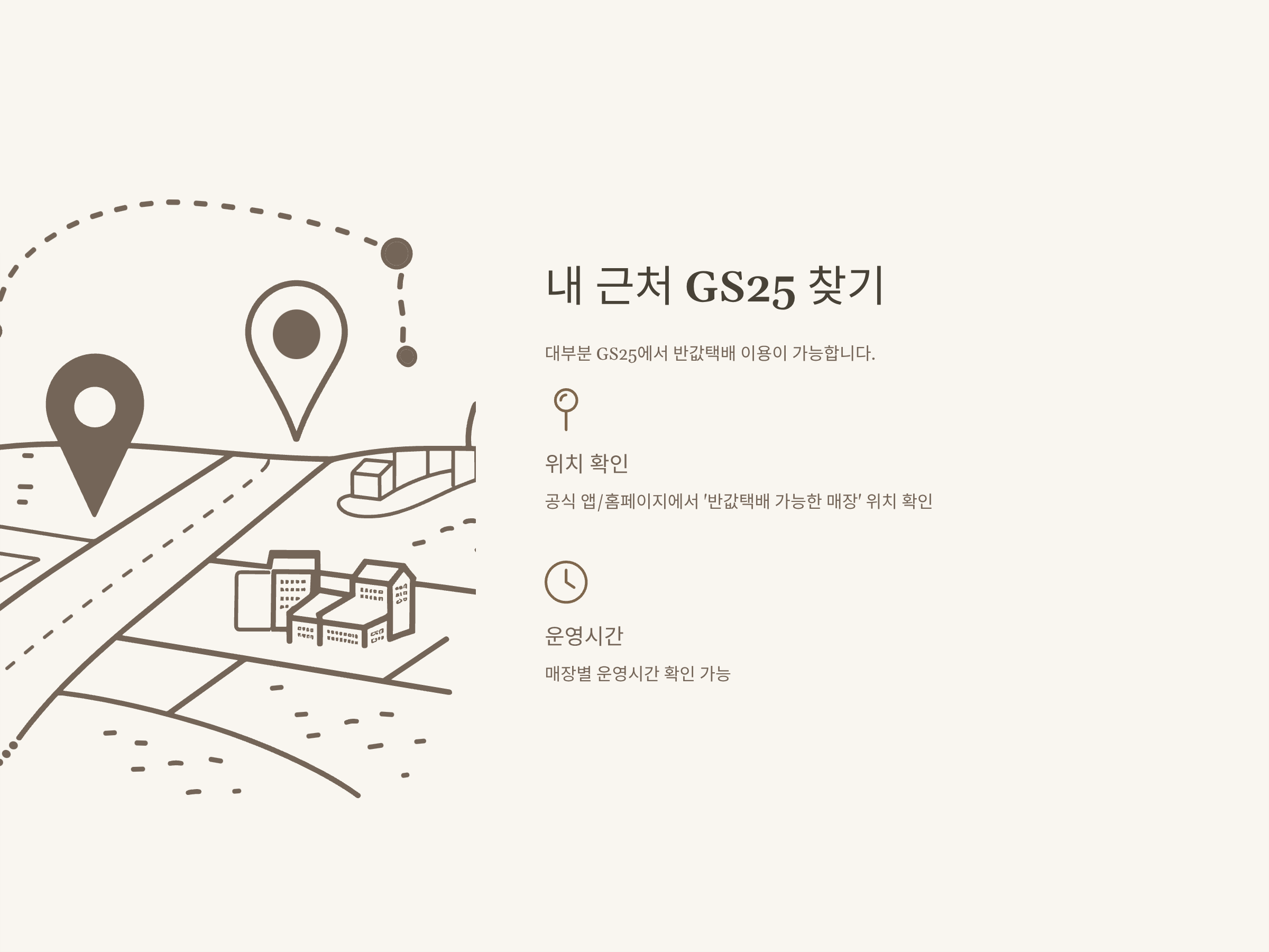 GS25 공식 홈페이지나 ‘반값택배’ 앱에서 지점 찾기 메뉴를 활용하면, 반값택배 가능 매장과 운영시간, 위치까지 한 번에 조회할 수 있습니다.