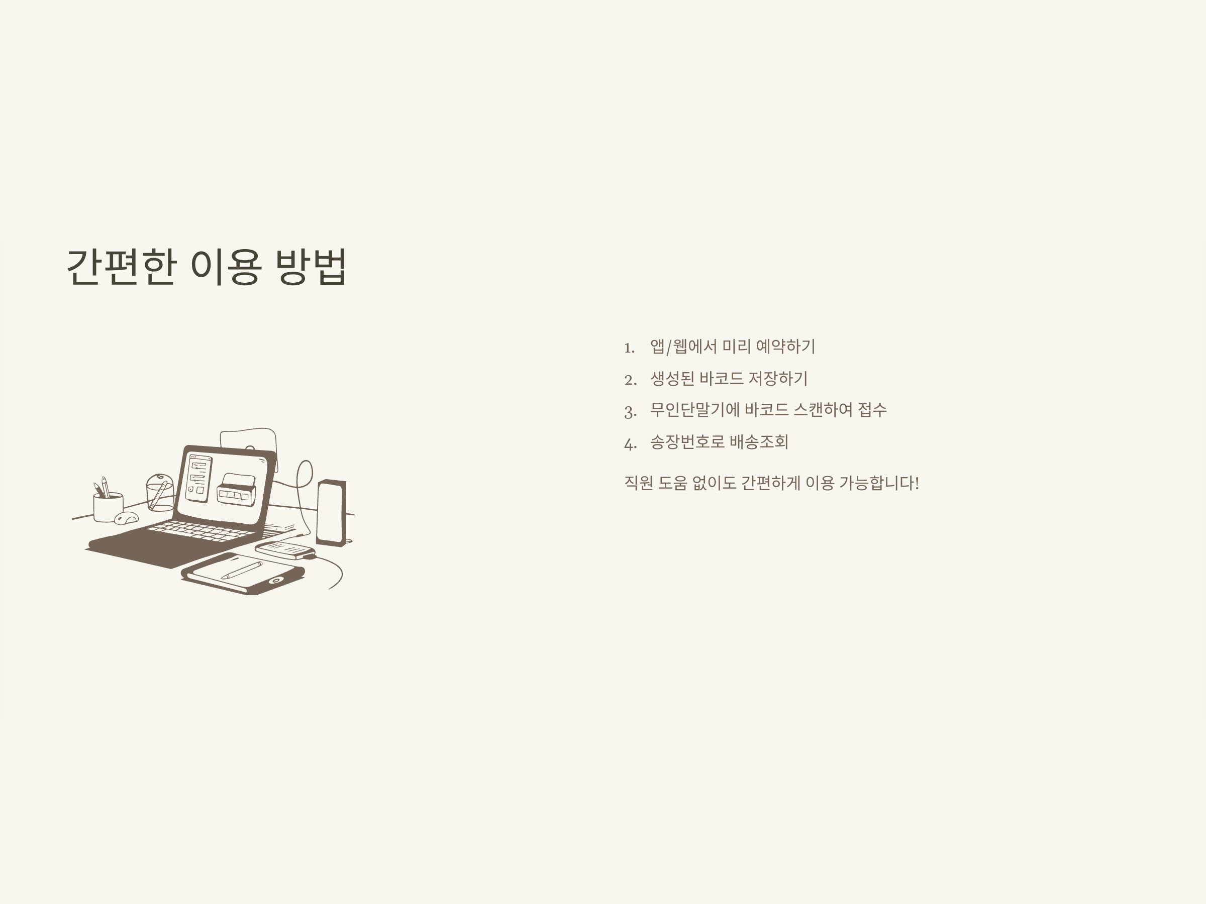 또 실제 방문 시, 매장 내 반값택배 전용 무인접수기(키오스크)가 설치되어 있으면 더 빠른 접수가 가능하더라고요.