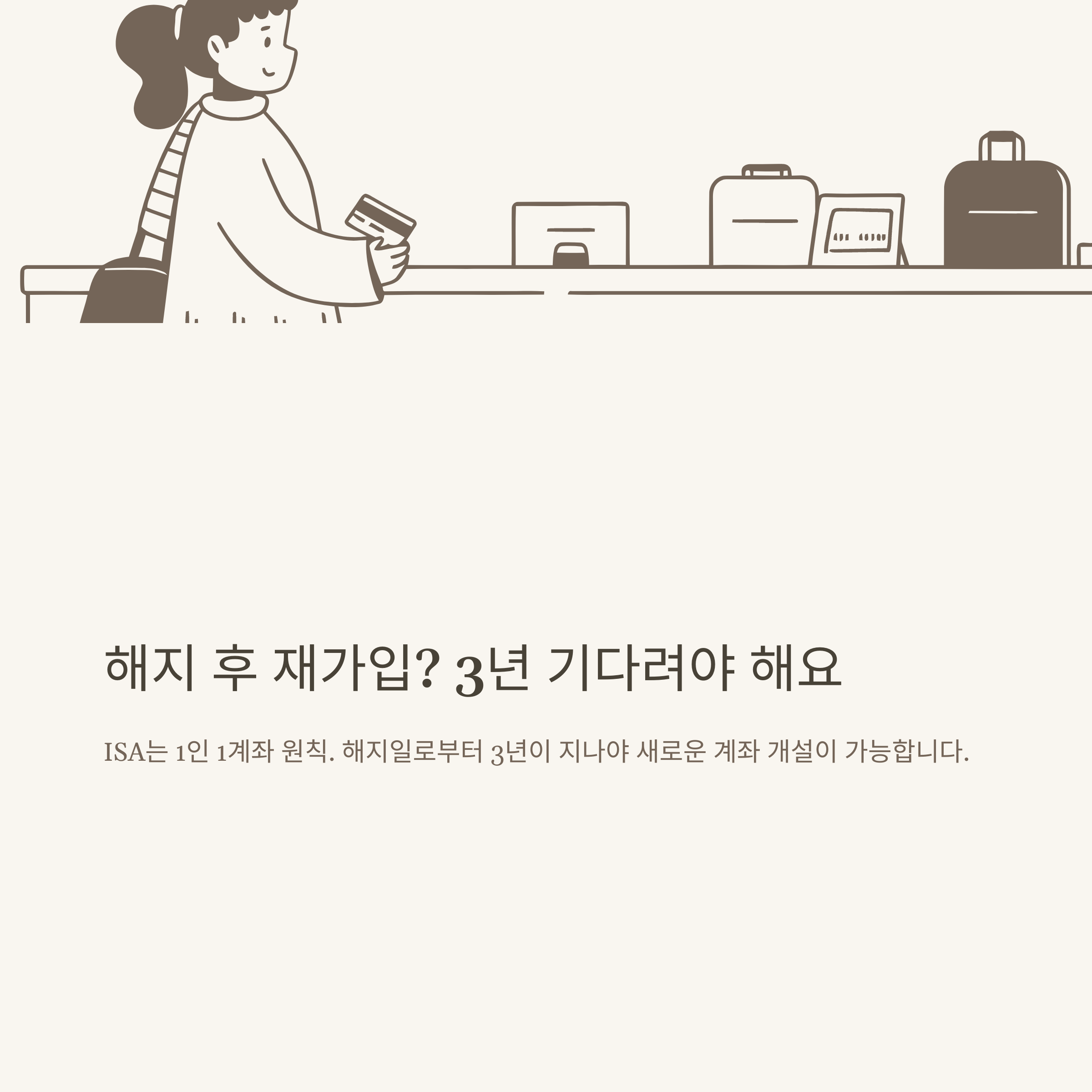 ISA계좌는 1인 1계좌 원칙이 적용되기 때문에, 해지하면 바로 다시 가입할 수 있을까요? 저도 이 부분이 궁금해서 은행에 직접 물어봤었는데, 결론은 해지 후 3년이 지나야 재가입이 가능하다는 것이었습니다. 즉, 해지일 기준 3년이 경과하지 않으면 어떤 금융사에서도 새롭게 ISA계좌 개설이 불가능해요. 만약 실수로 중도해지했다면, 그 뒤로 3년 동안은 ISA의 절세 혜택을 다시 누릴 수 없습니다. 이 점은 많은 분들이 간과하시더라고요. 해지 전 반드시 재가입 여부와 조건을 확인하시고, 되도록 만기까지 유지하시는 게 좋습니다.